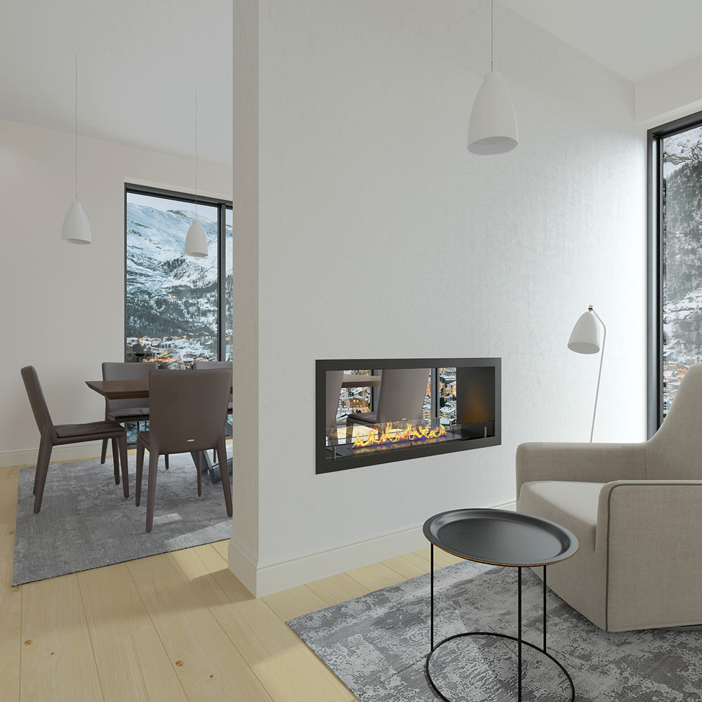 - Тип биокамина: Встраиваемый сквозной