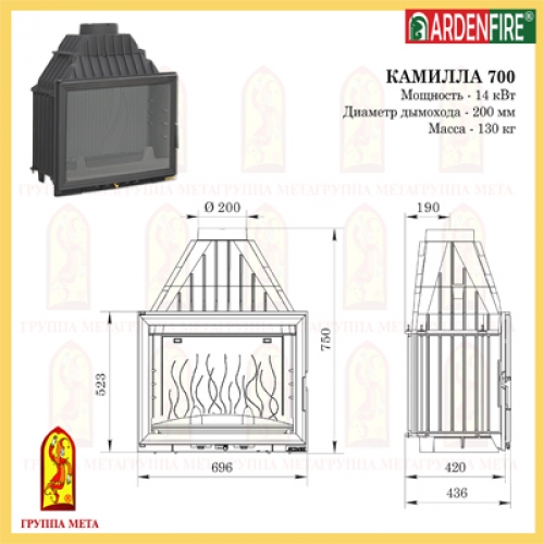 Каминная топка Мета Ardenfire Камилла 700