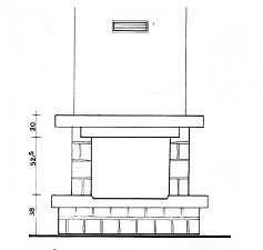 Пристенная модель с плитой из красного веронского мрамора, декорированный цоколь и балка из дерева.
