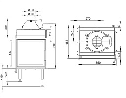 Каминная топка с дымосборником. Стекло справа.