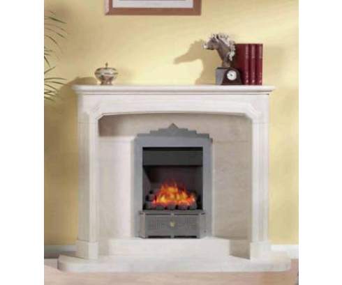Этот стройный портал изготовлен из высококачественного мрамора светлого оттенка. Дверца из жаропрочного стекла украшена резным обрамлением из стали серого цвета.