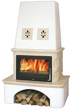 Окно топки изготовлено из стеклокерамики, выдерживающей нагрев до 800 градусов Цельсия. Тип стекла - выпуклый. Открытие - боковое.